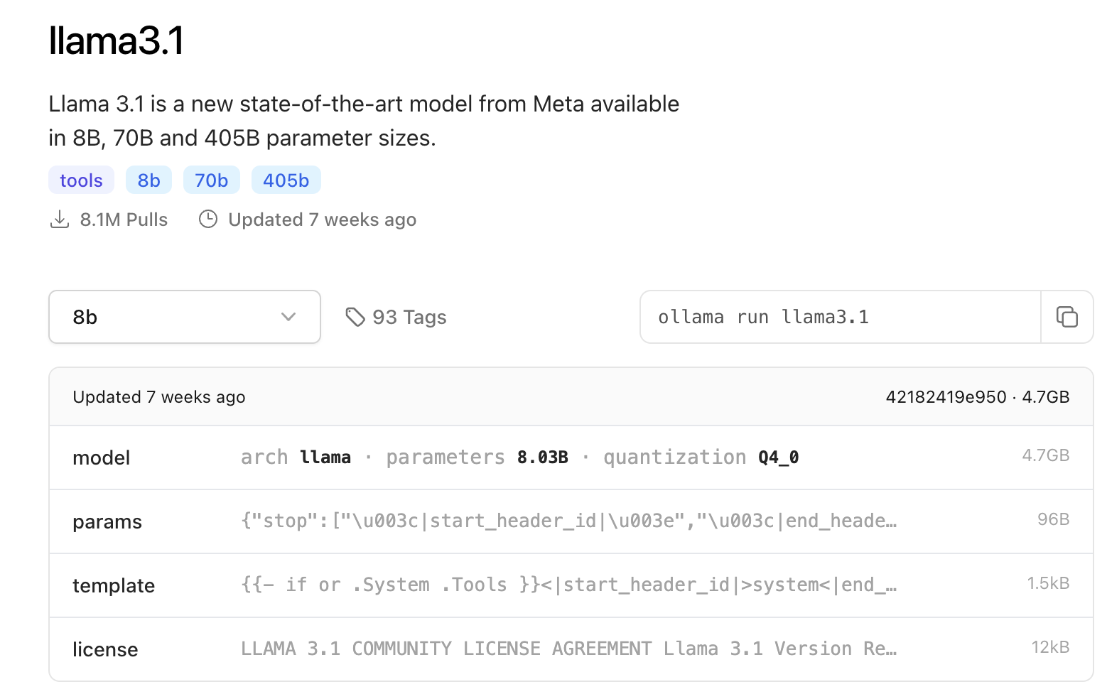 $ ollama pull llama3.1