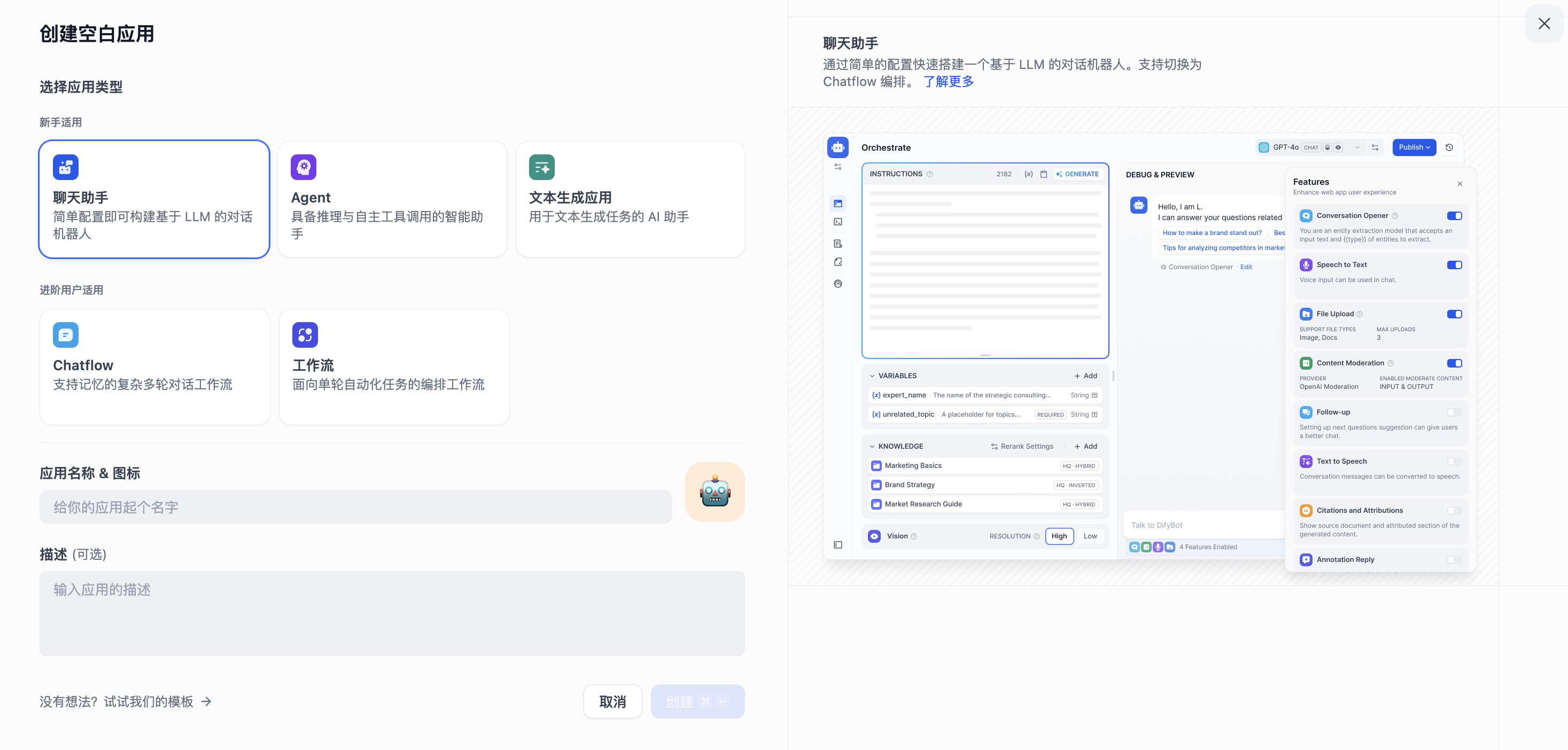 - 对话助理 简单配置即可构建基于 LLM 的对话机器人