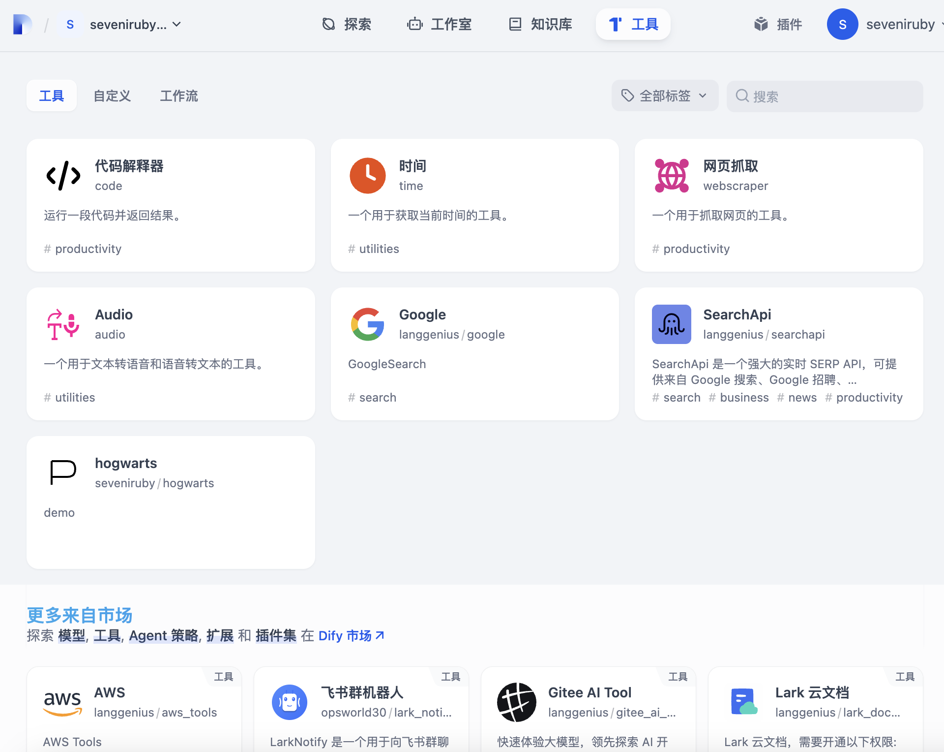 工具指的是能够被 Chatflow / Workflow / Agent 类型应用所调用的第三方服务。提供完整的 API 实现能力,用于增强 Dify 应用的能力。例如开发一个 Google 搜索插件,详情请参考快速开始:Tool 插件。