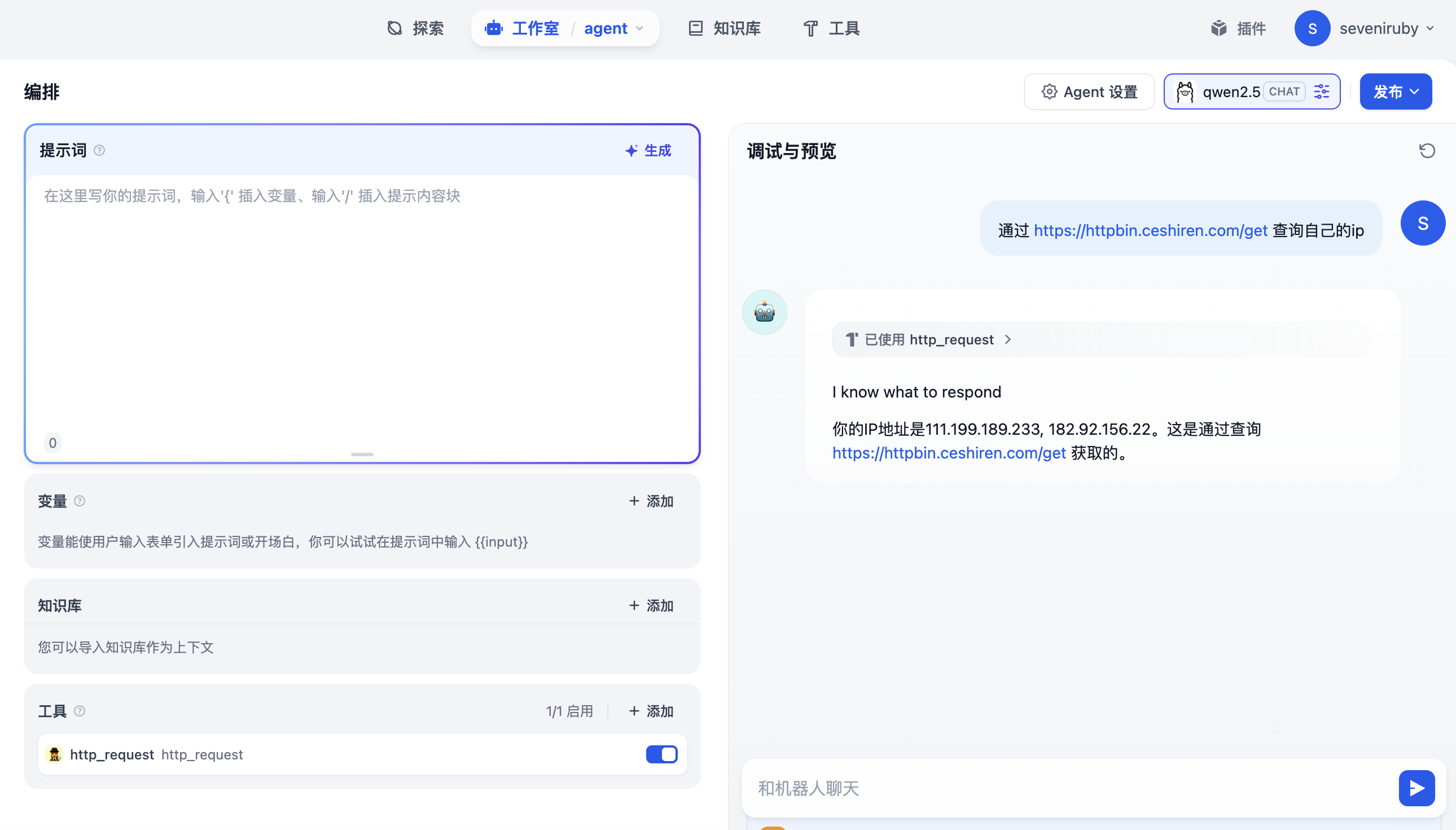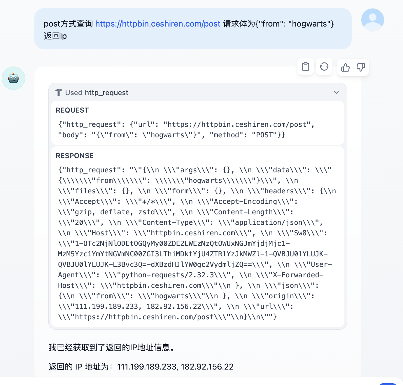 与 Web 自动化智能体类似,接口自动化智能体是智能体的一种,在已有智能体的基础上,提供了接口测试能力。核心元素包括大语言模型、推理决策机制、接口工具套件等元素。