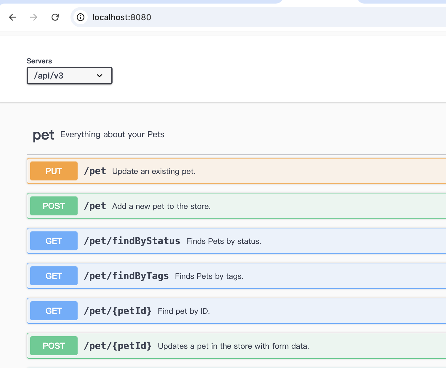 docker run --name swaggerapi-petstore3 -d -p 8080:8080 swaggerapi/petstore3:unstable